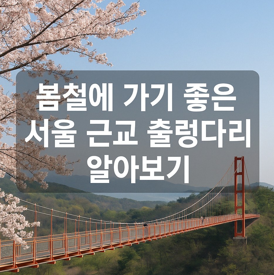 따뜻한 햇살이 반겨주는 봄, 가벼운 나들이로 어디를 갈지 고민이라면 ‘출렁다리’는 어떠세요? 서울 근교에는 자연과 스릴, 힐링이 어우러진 다양한 출렁다리가 있어 봄철 여행지로 인기를 끌고 있어요. 오늘은 각 명소의 특징과 함께 주변 맛집까지 소개해드릴게요!
