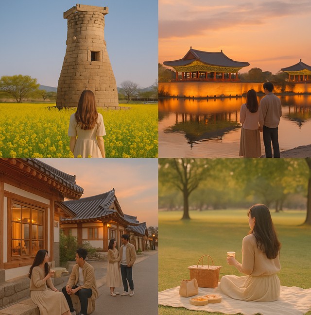 - 📷 감성 사진 포인트: 첨성대 동쪽 유채꽃길, 돌담길 위 반영 컷