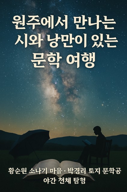 문학과 자연이 함께 숨 쉬는 도시, 원주. 이곳에서는 유명 작가들의 발자취를 따라 걸으며, 깊은 여운을 남기는 시와 소설 속 풍경을 직접 만날 수 있습니다. 오늘은 "원주에서 만나는 시와 낭만이 있는 문학 여행"을 주제로, 야간 천체탐험까지 즐길 수 있는 특별한 1박 2일 코스를 소개합니다.