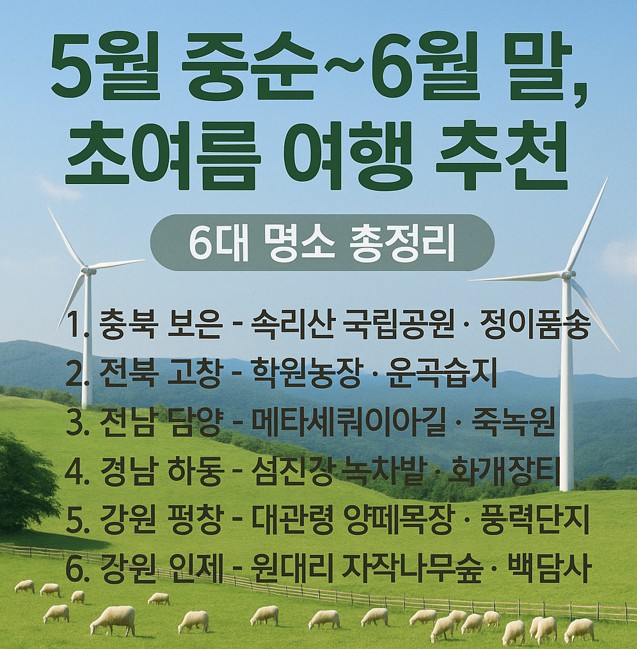 🌿 5월 중순~6월 말, 초여름에 꼭 가야 할 전국 6대 명소 추천